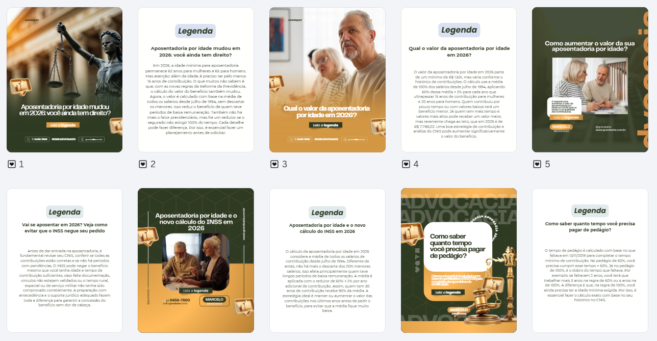 Nos packs mais recentes, as legendas ficam ao lado do post para facilitar a visualização.